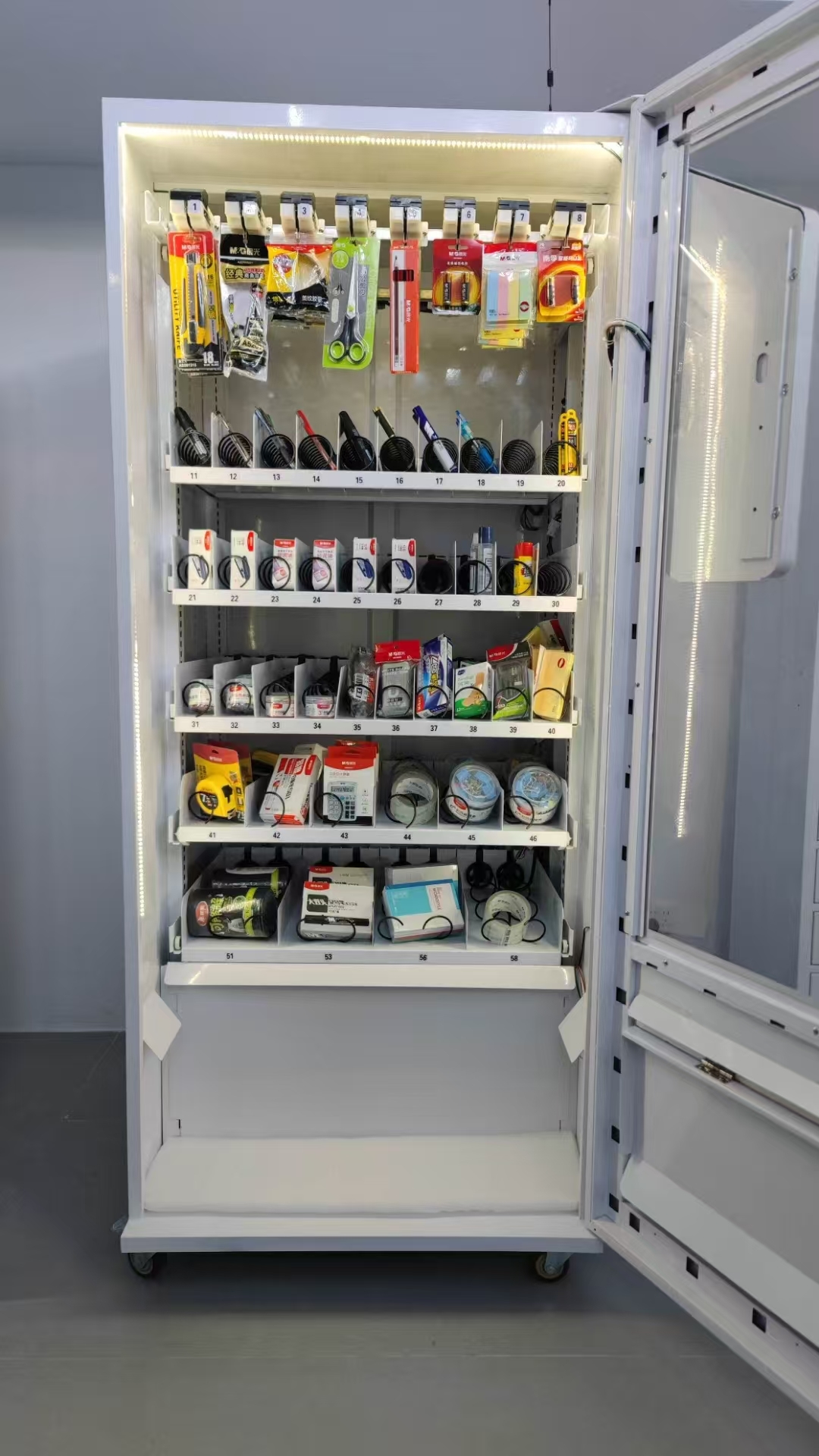 사무용품 재고 솔루션(TVM-1900)은 24시간 연중무휴 사무용품 가용성을 제공하고, 팀이 새로운 유연한 작업 모드에 적응하며, 효율성을 향상시키는 것을 목표로 합니다.소형에서 대형까지, 다양한 패키지의 다양한 사무용품에 적합한 다중 분배 솔루션입니다.